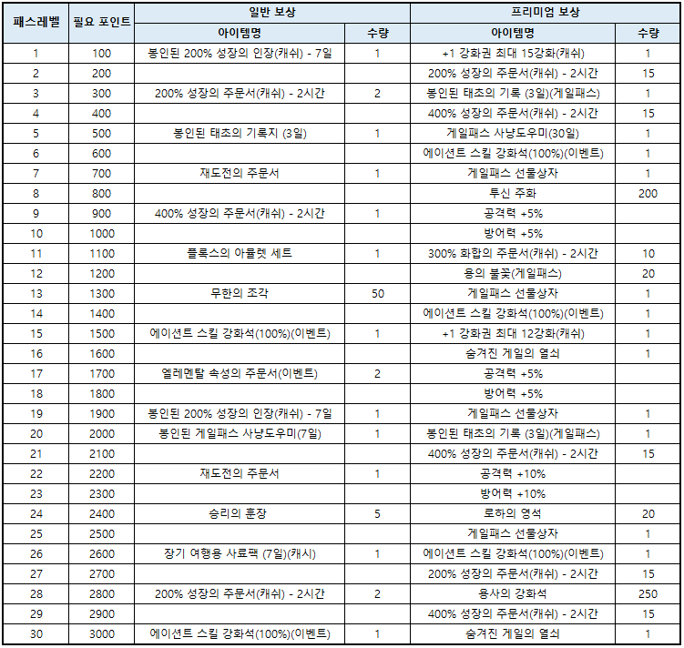 6) °ÔÀÏ ÆÐ½º ·¹º§ º° º¸»ó Á¤º¸