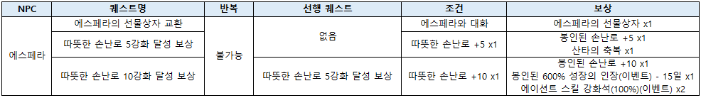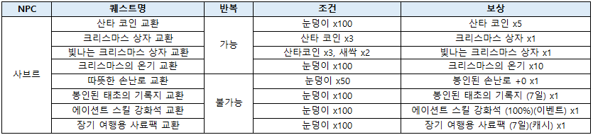 - ³»¿ë : À̺¥Æ® ±â°£ µ¿¾È »ý»ê °ø¹æ¿¡ À§Ä¡ÇÑ NPC»çºê¸£/¿¡½ºÆä¶ó¿¡°Ô ´Ù¾çÇÑ À̺¥Æ® Äù½ºÆ®¸¦ ÁøÇàÇÒ ¼ö ÀÖ½À´Ï´Ù.