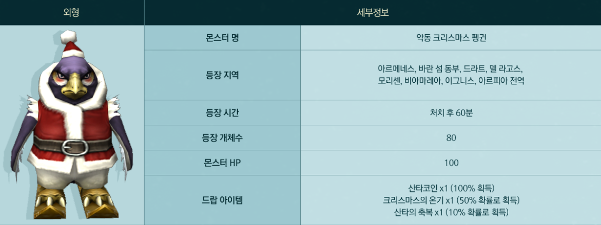 - À̺¥Æ® ±â°£¿¡ µîÀåÇÏ´Â ¾Çµ¿ Å©¸®½º¸¶½º Æë±ÏÀ» óġÇÏ°í »êŸÄÚÀÎ ¹× »êŸÀÇ ÃູÀ» ȹµæÇϼ¼¿ä.