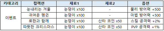 - Å©¸®½º¸¶½º À̺¥Æ® ±â°£¿¡¸¸ ±¸¸ÅÇÒ ¼ö ÀÖ´Â ÄÚ½ºÆ¬ÀÌ ¾ÆÀÌÅÛ ¸ô¿¡ Ãß°¡µË´Ï´Ù.